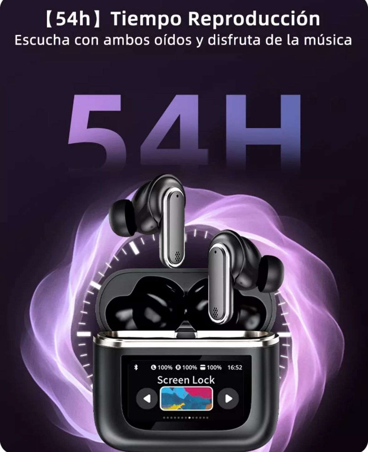 🔹 Pantalla táctil LCD a todo color en la caja de carga: controla música, llamadas y más con solo un toque.