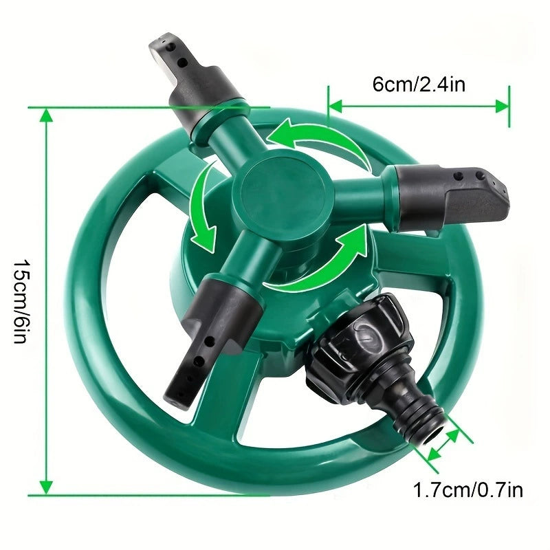 Su diseño giratorio y regulable permite adaptarlo a diferentes áreas del jardín, facilitando la cobertura según tus necesidades. Fabricado con materiales resistentes y de fácil instalación, este aspersor combina practicidad y durabilidad para tu espacio exterior.