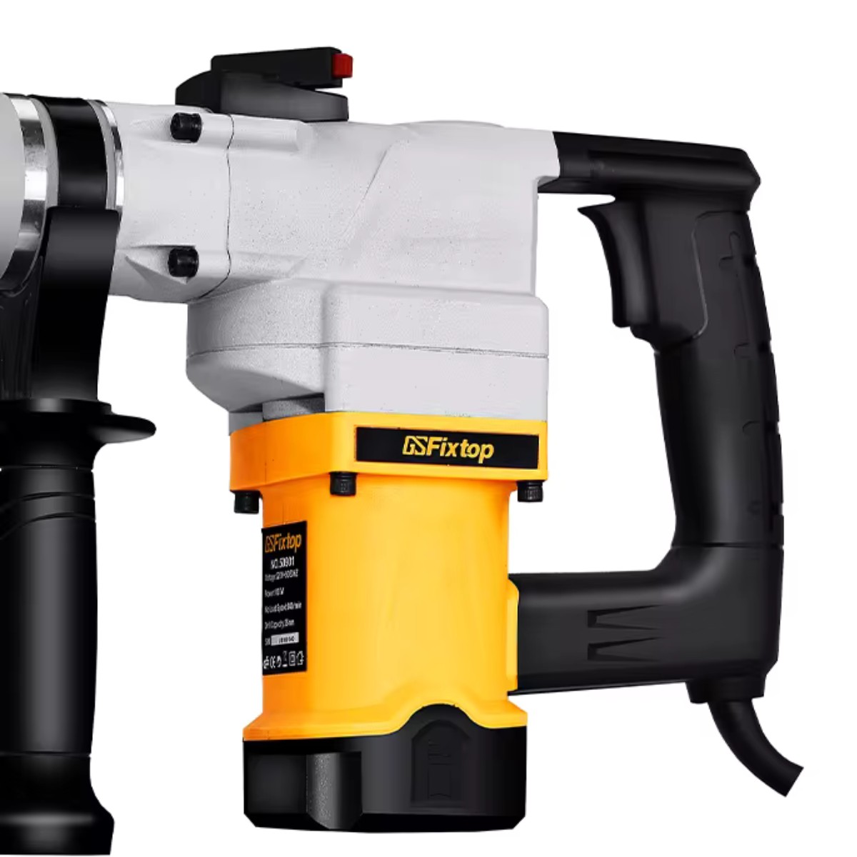 Multifuncionalidad: Cambia entre los modos de martillo y taladro con una sola tecla, adaptándose a diversas tareas como perforar concreto, ladrillo, madera o metal, además de cincelar como ranurar.