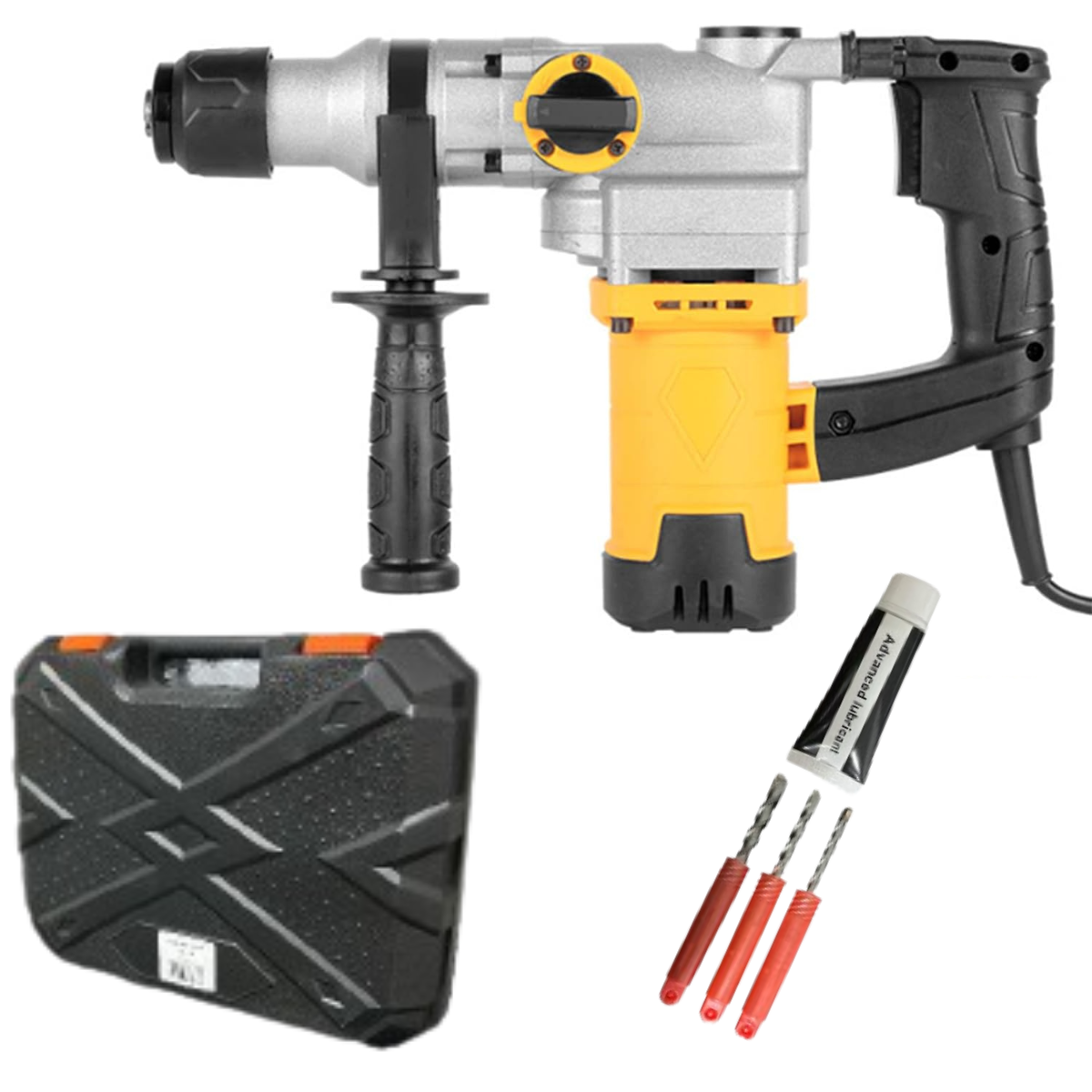 Tu aliado perfecto para tareas de perforación, demolición y cincelado. ¿Cansado de herramientas limitadas que no satisfacen todas tus necesidades de trabajo manual? Presentamos el Taladro Eléctrico Profesional 4 Piezas, es una herramienta versátil, siendo potente, te permitirá abordar una amplia gama de proyectos con precisión. 5 características que te encantarán: